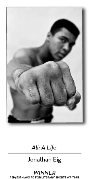 From the judges’ citation: “There has rarely, if ever, been an athlete as famous the world round as Muhammad Ali, and there has rarely, if ever, been an athlete whose life has been so thoroughly documents, in countless photographs and articles, and of course in books as well. And yet Jonathan Eig’s Ali: A Life, stands above them all. It is a beautifully-written, transcendent biography that renders vivid in every stage of how remarkable life: Ali the brash teenager, Ali the proud Muslim, Ali the conscientious objector—and then: Ali the warrior, the man of peace, and finally the icon. More than simply describing a life, Eig has created a context that allows us to understand that life more fully than we ever have before. This is biography at its best.”