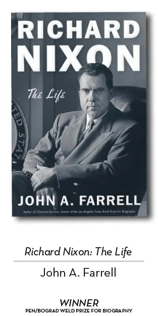 From the judges’ citation: “Critics have called John Farrell’s Nixon “brilliant,” “exhaustive,” and “Shakespearian,” and all are deserved. Yet most stunning is the meticulous and eerie portrayal of Nixon’s toxic psychological progression, so that in the end Watergate or something like it was fated to happen. Horatio Alger tales run rampant in our culture, and Nixon played his to the hilt: the lower-middle-class kid—the “somebody who was nothing”—who rose to the top despite all obstacles. Yet so often omitted from the myth are its darker underpinnings: isolation, envy, self-pity, and finally, paranoia. We watch this all unfold in the best literary tradition: it is poignant and chilling simultaneously, and Farrell accomplishes this for the first time using newly released files and archival material. “I had to win,” Nixon said after an early and dirty campaign: “That’s something you don’t understand.” Unfortunately, however, we do, for hasn’t such “victory” become our national creed? Nixon’s descent is our descent, and this understanding elevates Farrell’s account into the true realm of tragedy.”