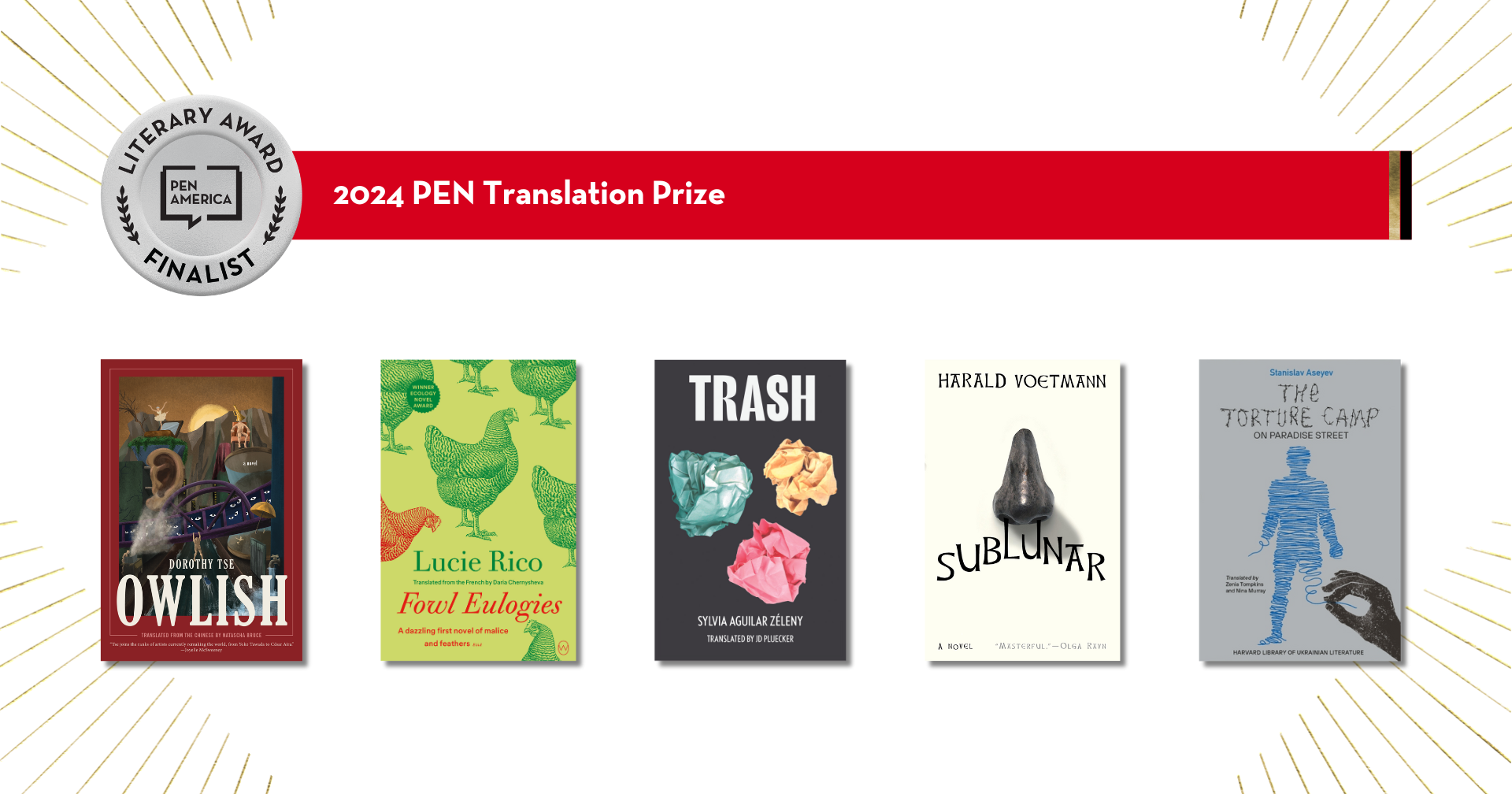 The following titles have been withdrawn from consideration at the request of the translator: Owlish by Dorothy Tse translated from the Chinese by Natascha Bruce on Bookshop, Trash by Sylvia Aguilar-Zéleny translated from the Spanish by J.D. Pluecker on Bookshop