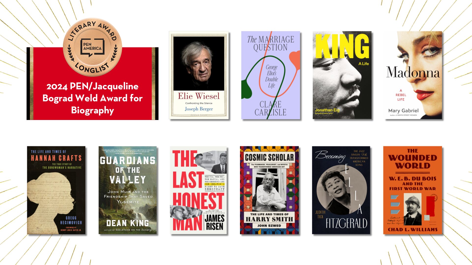 PEN America is honored to announce the Longlists for the 2024 Literary Awards. Our Awards are juried by panels of esteemed, award-winning authors, editors, translators, and critics. These authors are committed to recognizing their contemporaries, from promising debut writers to those who have had a continuous, lasting impact on the literary landscape.