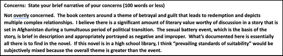 For example, reviews for some of the titles actually affirm that they have literary and artistic merit, and that they do not have content that their specific reviewers indicated was inappropriate. This includes titles that were pulled in Walton County: The Kite Runner by Khaled Hosseini and Forever…, by Judy Blume. Relatedly, while the reviewer for The Hate U Give by Angie Thomas indicated that they found “the repetitiveness of curse words and/or grossly inappropriate words for young ears” offensive in the book, they also indicated that the book could serve as a “major tool for assisting in the instruction of a subject” and that they would personally share the book with a minor. Regardless, it was pulled from shelves in Walton County too.