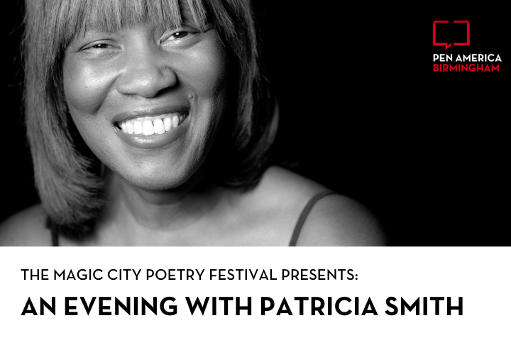 Join PEN Birmingham at the Magic City Poetry Festival for a digital conversation with award-winning poet Patricia Smith. This webinar is free, open to the public, and sponsored by the Alabama State Council on the Arts and PEN Birmingham.