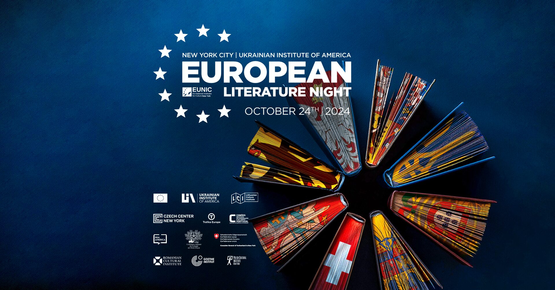 Authors, translators, and performers from seven E.U. countries will convene in New York City on October 24, 2024, for the annual European Literature Night. Hosted by the Ukrainian Institute of America, the event will feature inspiring multilingual readings, Q&A sessions, panel discussions moderated by PEN America’s Clarisse Rosaz Shariyf and Sabir Sultan, and musical performances. This year’s program explores a range of contemporary writing, from the intimate stories of Franz Kafka and post-Soviet autofiction to travel journals and anthropological essays, all reckoning with the past and future.