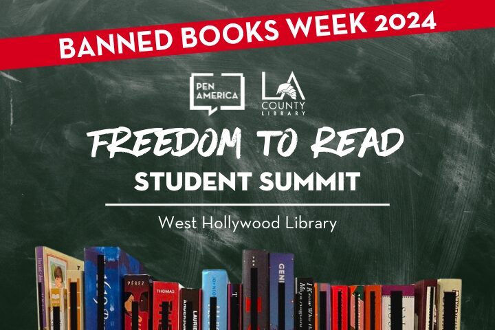 PEN America and LA County Library are excited to announce our Freedom to Read Student Summit at West Hollywood Library for Banned Books Week 2024! In this convening, high school students will be welcomed to engage with each other and youth advocacy leaders from PEN America in a series of workshops designed to discuss and counter growing threats to the freedom to read in California and nationwide.