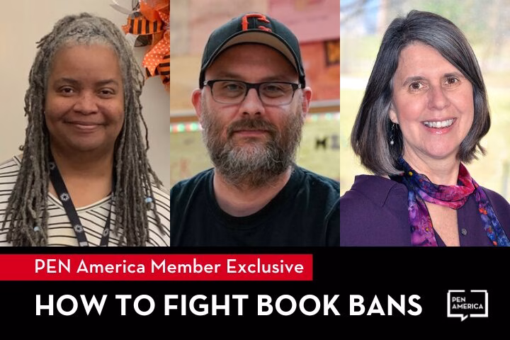 Join us and fellow PEN America members on July 9th at 6 pm ET over Zoom as we delve into the current state of U.S. book bans and provide actionable strategies to fight them. Our expert on book bans, Sabrina Baêta, will present a briefing on the report. Baêta will be joined by author and educator Cathy Fleischer; author, educator and founder of the Panther Anti-Racist Union Ben Hodge; and author, educator, and fierce LGBTQIA+ advocate Patricia A. Jackson to discuss effective strategies for combating the book ban crisis. The session will conclude with a Q&A. To secure your spot for this exclusive event, please visit the password-protected PEN America Member Benefits page: