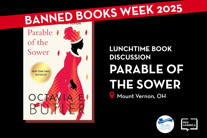 Join PEN America and the Public Library of Mount Vernon and Knox County for a lively discussion of Octavia Butler’s classic novel, Parable of the Sower. Librarian Christie will be hosting the discussion, and as in previous years, the Library will offer complimentary box lunches at its book discussion for patrons who register by the September 30th deadline.