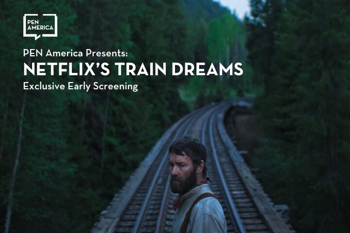 Be the first to see Train Dreams, the hauntingly lyrical new film based on Denis Johnson’s novella. The screening will be followed by a panel featuring director Clint Bentley and actors Joel Edgerton and Kerry Condon, moderated by PEN America.