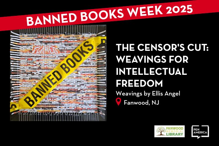 In a unique collaboration, the Fanwood Memorial Library, Scotch Plains-based artist and activist Ellis Angel, and PEN America will present The Censor’s Cut: Weavings for Intellectual Freedom, an art installation of paper weavings taken from shredded banned books. The exhibition at the library opens September 9, 2025, and will continue through the start of national Banned Books Week (October 5-11) and will remain on display until October 24, 2025.