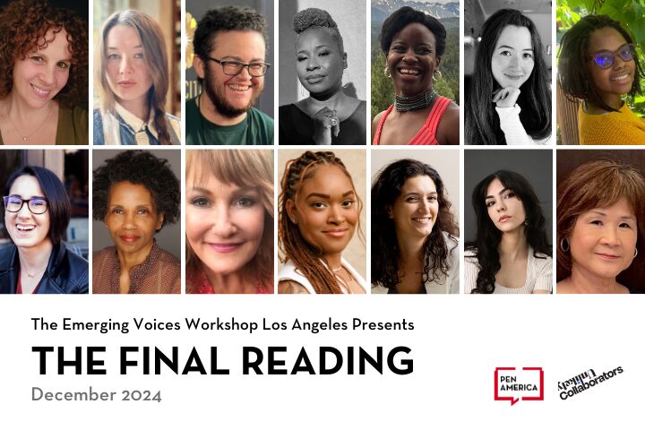 The Winter 2024 Emerging Voices Workshop Presents: the Final Reading. Join us for this celebratory event, featuring the talented writers of our Emerging Voices Workshop in Los Angeles. Led by poetry facilitator Nancy Lynée Woo, nonfiction facilitator Shonda Buchanan, and fiction facilitator Charmaine Craig, don’t miss out on the opportunity to hear from the literary voices of tomorrow.
