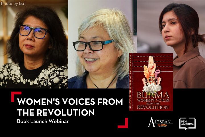 This event is co-organized by the PEN/Barbey Freedom to Write Center and ALTSEAN-Burma. ALTSEAN-Burma ran its first Women Writers Workshop in 1998. Women’s Voices from the Revolution is its tenth Women’s Voices anthology, showcasing writings by workshop participants, and its first published since the military coup in 2021.