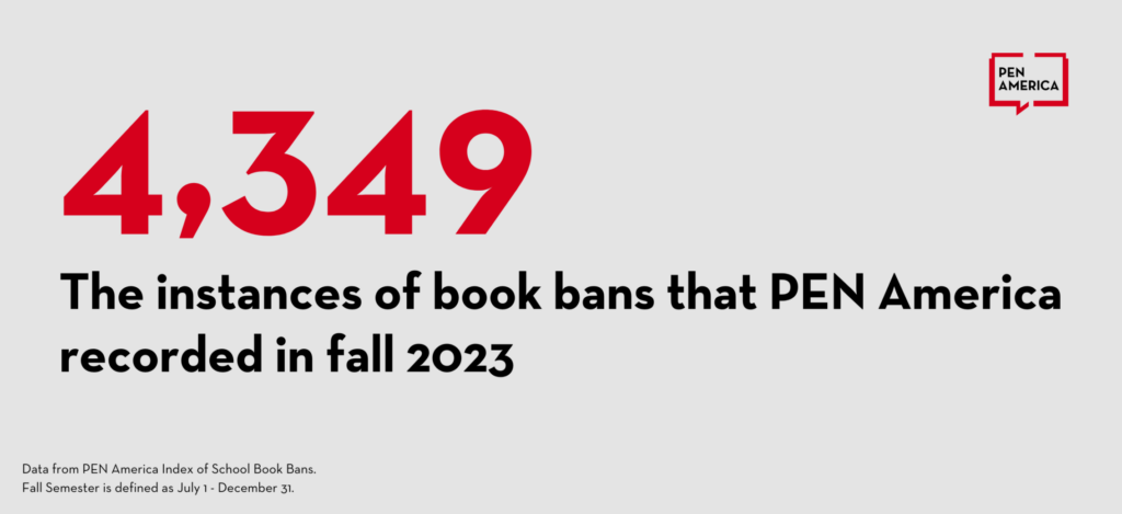The report highlights how the bans are speeding up. There were over 4,000 instances of book bans in the first half of the 2023-24 school year—more than all of last school year as a whole. This is a marked increase in comparison to the last spring semester, in which PEN America recorded 1,841 book bans.