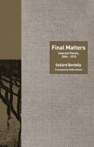 Final Matters: Selected Poems, 2004-2010, Szilárd Borbély (Princeton University Press)