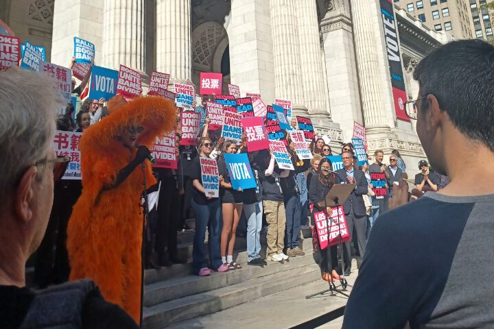 At the New York and Brooklyn public libraries, PEN America provided information on book bans and joined special guests including Sasha Velour, winner of Season 9 of RuPaul’s Drag Race, and Peter Parnell and Justin Richardson, authors of the classic children’s book And Tango Makes Three.