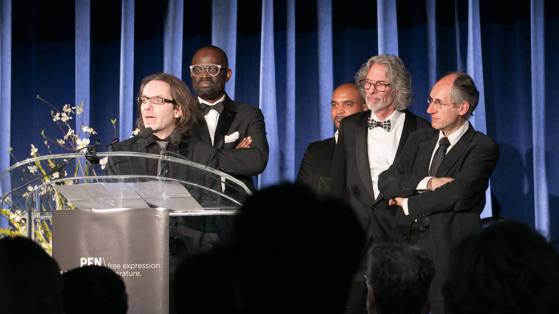 At the 2015 PEN Literary Gala, Paris-based satirical weekly Charlie Hebdo was honored with the PEN/Toni and James C. Goodale Freedom of Expression Courage Award. An attack on the offices of Charlie Hebdo took the lives of eight staff cartoonists and columnists, a visiting writer, a building maintenance worker, and two policemen. The day after the attack, the surviving staff of Charlie Hebdo magazine vowed to continue publication, releasing their next edition on time, donating all proceeds to the families of the victims. The Charlie Hebdo attacks dealt a blow to the bedrock principle that no act of expression, no matter how provocative or offensive, can justify violence.