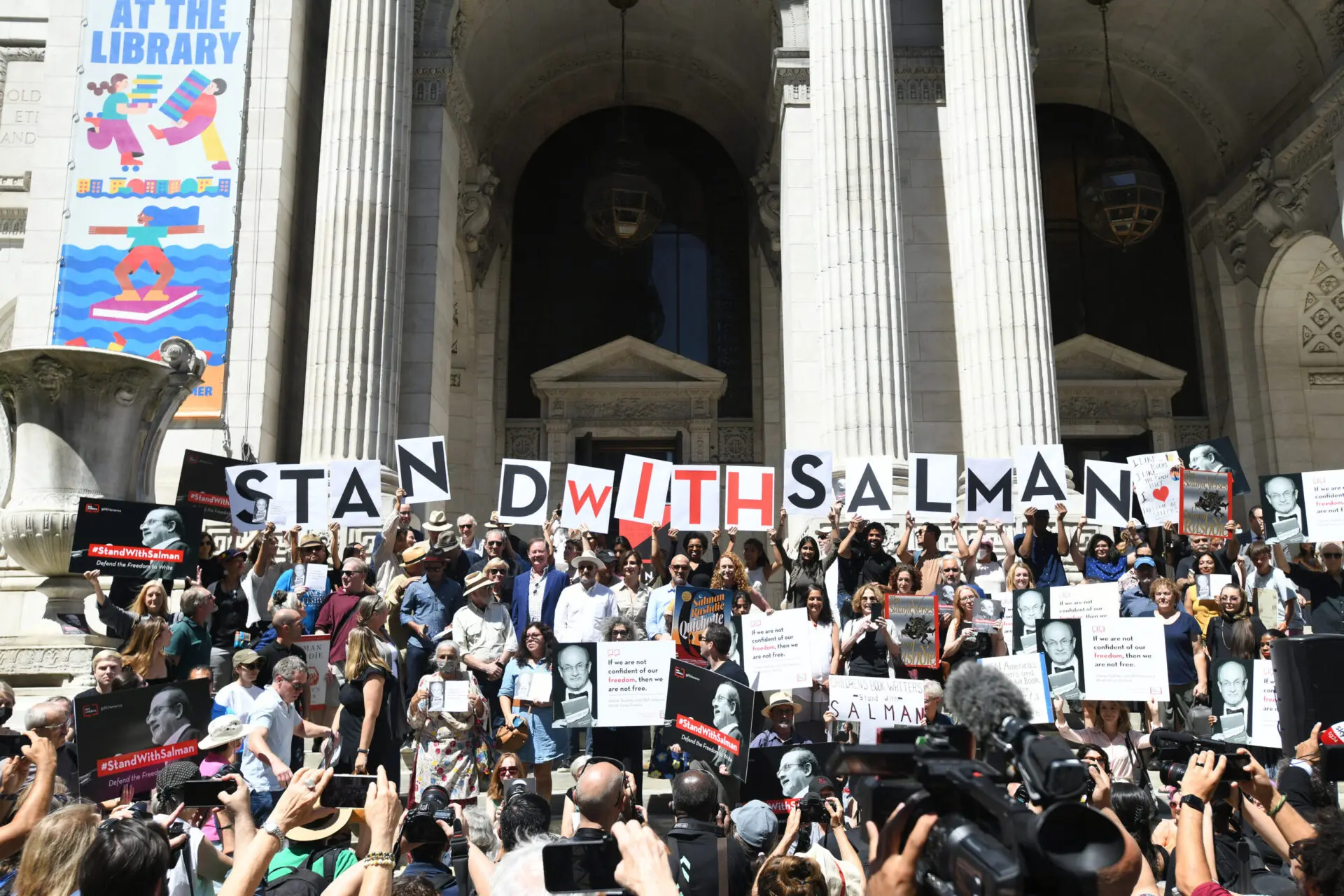 - Great to see a crowd gathered outside the @nypl today for @PENamerica #StandWithSalman @SalmanRushdie @DrAmandaForeman