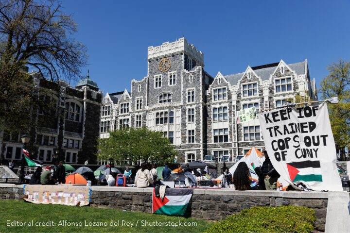 Education and engagement should be at the forefront of a university’s response. If a school has a policy against tents — pre-existing or just now put into place — Shahverdian advises having a grace period to let students know. And if student protesters do use tents in a restricted area or otherwise violate the rules — say, banging drums outside a room where students are taking a test — she advises administrators to engage in dialogue first. “Find out what they want. Would they be willing to protest without the tents? Explain the reasons for the policy. Engaging in dialogue increases the opportunities to find a solution that respects everyone’s rights.”