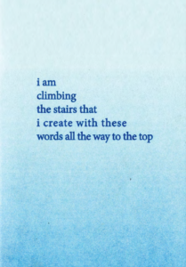 At the end of the month, the artists sent in their favorite poems, which we assembled to produce a zine, I am climbing the stairs that I create with these words all the way to the top. Housing the work of eighteen poets, this zine celebrates not only the words of our participants, but the work behind them: the shared cultivation of a literary community through the walls. As mentor Michelle Glass wrote when reflecting on this year’s NaPoWriMo, “Feeling a connection to a community of writers outside of the fences lifts our creative spirits above the walls that confine us.” We’re also grateful that this zine was printed with Secret Riso Club, a graphic design and risograph studio that, like our PEN America Prison Writing Program community, works to create a collaborative space for developing ideas and new art. With their help, this zine stands as a testament to not just the beauty of poetry, but to the beauty of the space that poetry in community creates.