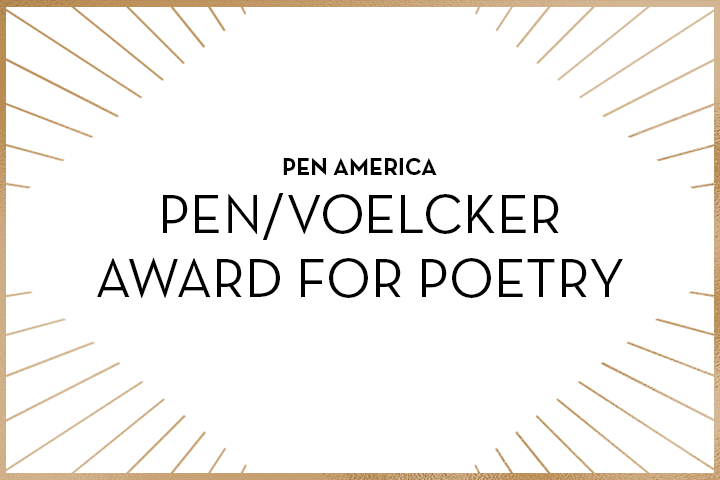 The PEN/Voelcker Award for Poetry is given to a poet whose distinguished and growing body of work to date represents a notable and accomplished presence in American literature.