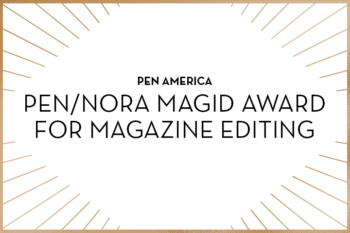 The PEN/Nora Magid Award for Magazine Editing honors a magazine editor who has greatly contributed to the excellence of the publication he or she edits.