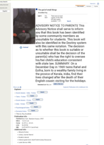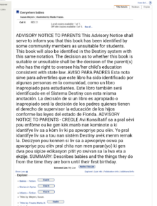 PEN America found that a warning to parents was inserted alongside a total of at least 110 titles in the school’s online catalog, saying, “this book has been identified by some community members as unsuitable for students.”