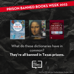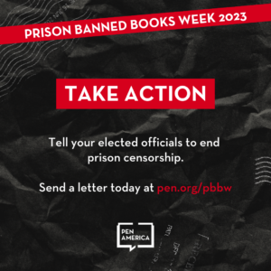 Thank you for joining forces with PEN America during our inaugural Prison Banned Books Week (October 25th-31st). Together, we’ll help people understand that prisons are the largest censors in the US and provide ways to participate in our advocacy campaign targeting state leaders and prison officials.