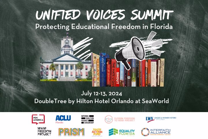 The Unified Voices Summit July 12-13 brings together authors, educators, students, teacher’s unions, faith leaders, and activists from across the state to solidify and mobilize the growing grassroots movement against censorship in schools.
