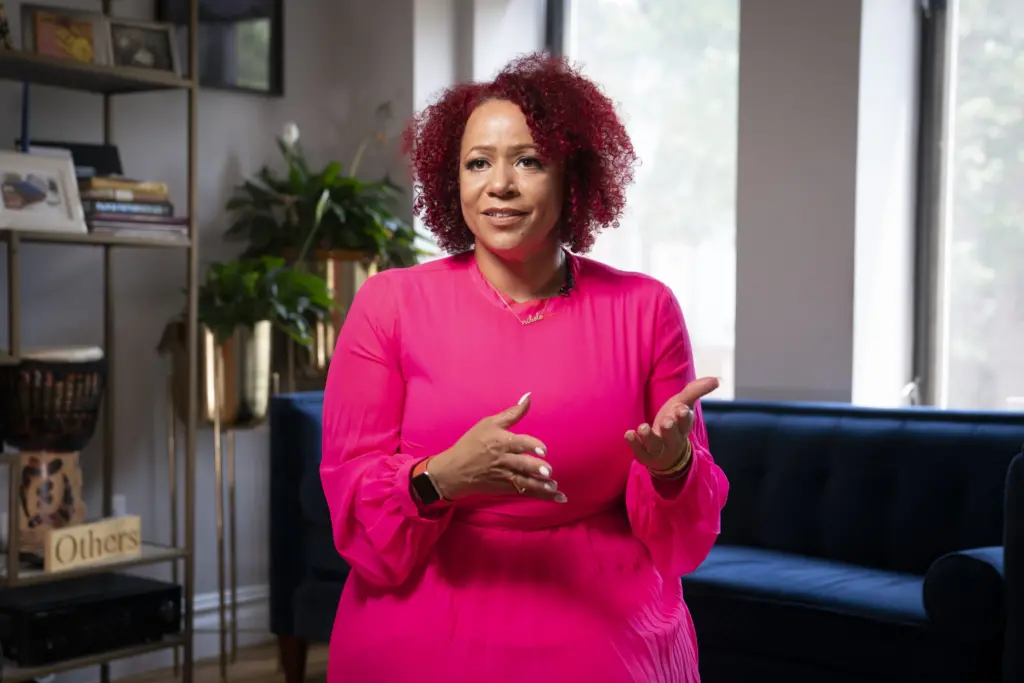 Nikole Hannah-Jones being interviewed in 2021. Hannah-Jones has led The New York Times’s “The 1619 Project,” which has aimed to “reframe the country’s history by placing the consequences of slavery and the contributions of black Americans at the very center of our national narrative.” Photo by AP/John Minchillo