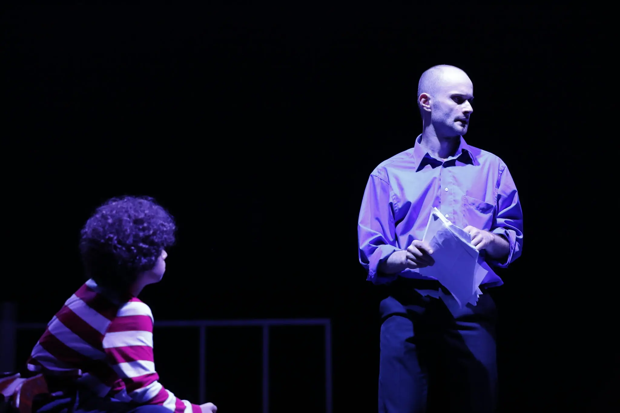 The mayor of Dmanisi speaking to director Lasha Chkhvimiani following his staging of Ibsen’s An Enemy of the People.