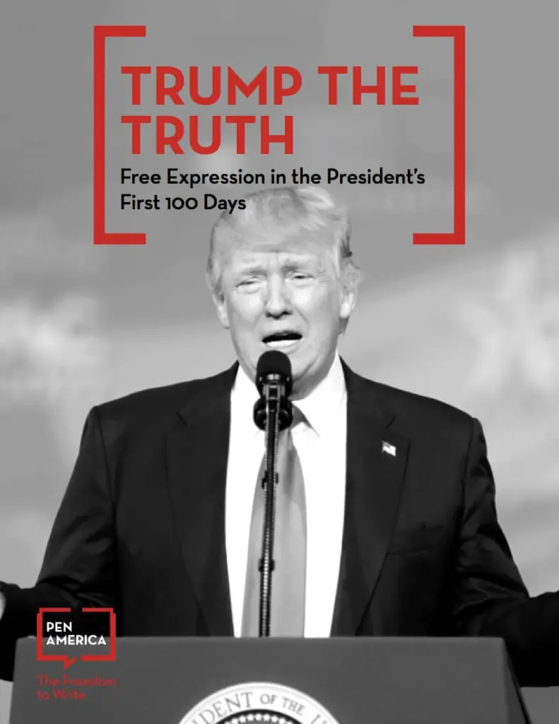 PEN America’s new report Trump the Truth: Free Expression in the President’s First 100 Days clocks more than 70 separate instances where President Trump or senior Administration officials have taken potshots at the press, including Presidential tweets decrying “fake news,” restrictions on media access, intimations that the press has “their reasons” for not reporting terror attacks, and branding press outlets as “the enemy of the American people.” These instances amount to near-daily efforts by the Trump Administration to undermine the press during the President’s first 100 days. Such efforts not only chip away at public trust for the media and its indispensable role in keeping the public informed, but also signal to regimes abroad that the United States will not stand up for press freedom.