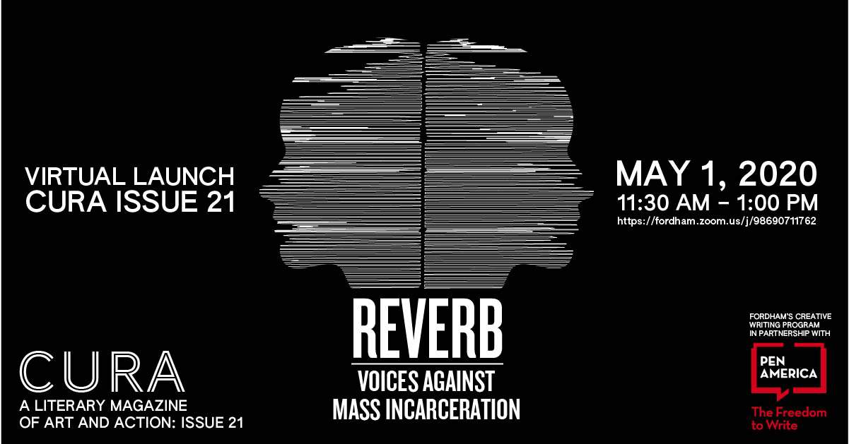 Join us on May 1 for the issue launch of REVERB, the mass incarceration-themed issue of CURA: A Literary Magazine of Art and Action. A collaboration between PEN America’s Prison Writing Program and Fordham’s Creative Writing Program, the event features performances by Aaron Samuels, Carlos Andrés Gómez, Justin Hicks, Liza Jessie Peterson, Louise K. Waakaa’igan and Nicole Shawan Junior. Learn more and RSVP here.