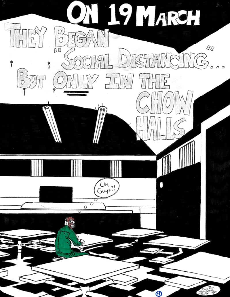 The COVID-19 pandemic is poised to wreak havoc within our nation’s prison system. For Temperature Check: Covid-19 Behind Bars, we commissioned artist and writer “PunkRockSpock” (Jeremy Wilson) to illustrate this graphic narrative from Attica Correctional Facility, NY.