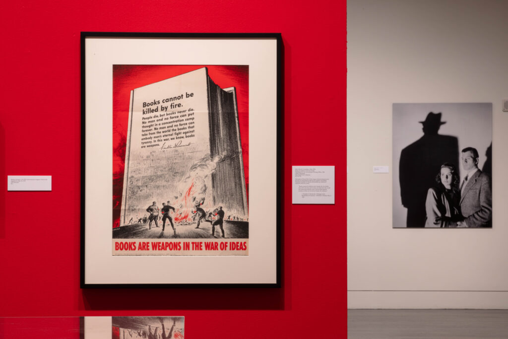 A 1942 poster in the exhibit that said, “Books are weapons in the war of ideas” reminded her of remarks by Salman Rushdie at an emergency writers’ congress PEN America hosted in 2022. “He said, ‘A poem cannot stop a bullet. A novel can’t defuse a bomb. But we are not helpless … We can sing the truth and name the liars. Stories are at the heart of what’s happening … we must work to overturn the false narrative of tyrants … by telling better stories.’”