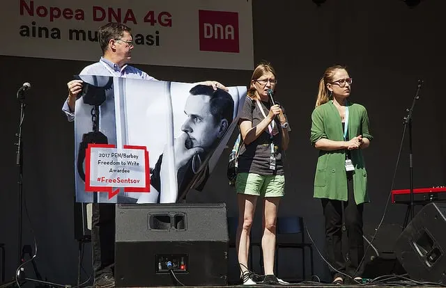 Members of the United States Congress, the European Parliament, Chancellor Merkel, President Macron, the European Film Academy, and leading Russian intellectuals and cultural figures have all called for his release, as has the U.S. State Department.