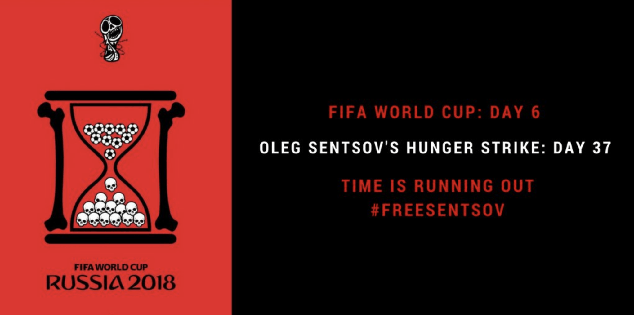 One month after Sentsov began his hunger strike, PEN America launches a social media campaign on the first day of the World Cup to mark each day that his strike continues.